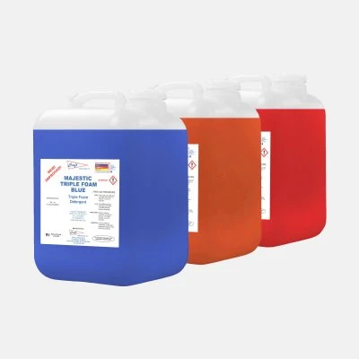 High‑performance detergents formulated for brushless pressure washing to cut road film, exhaust residue, clay and bug splatter while rinsing clean and, where specified, in phosphate‑free options.