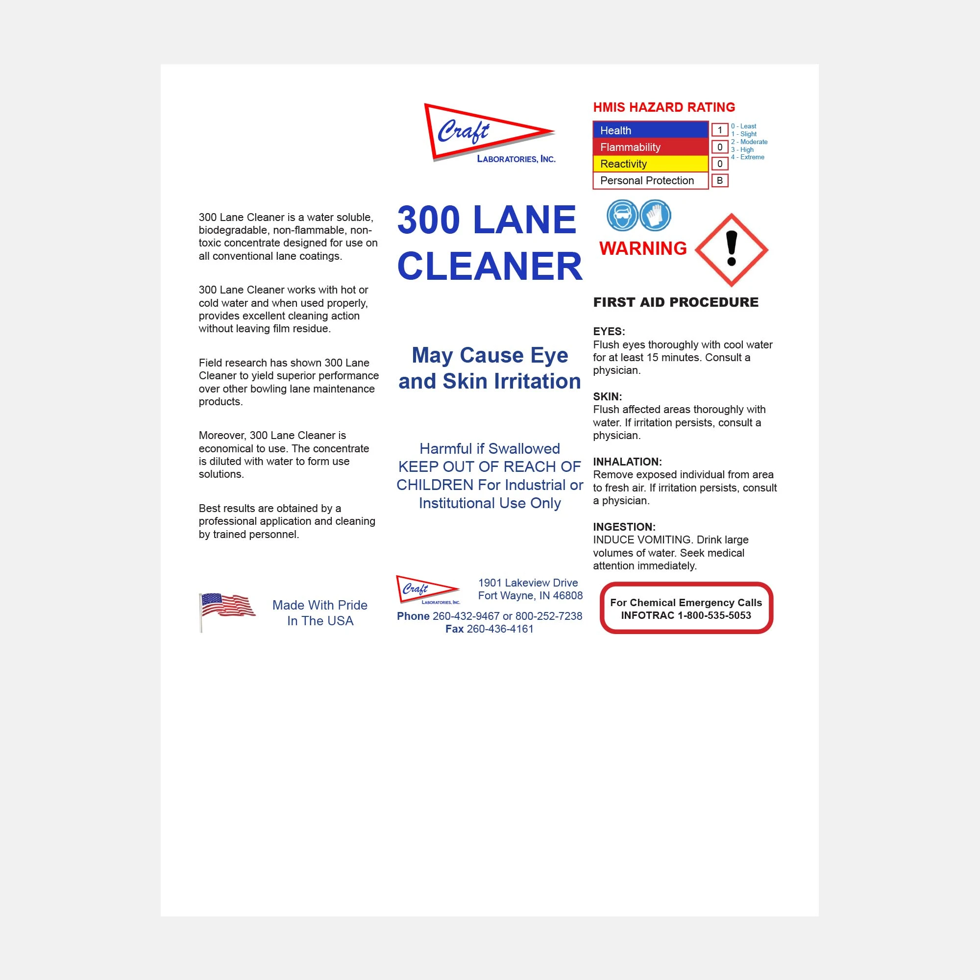 300 Lane Cleaner is a professional-grade, water-soluble cleaner formulated to deliver exceptional cleaning power for bowling lane surfaces. Biodegradable, non-flammable, and non-toxic, it provides powerful performance without residue or film buildup.