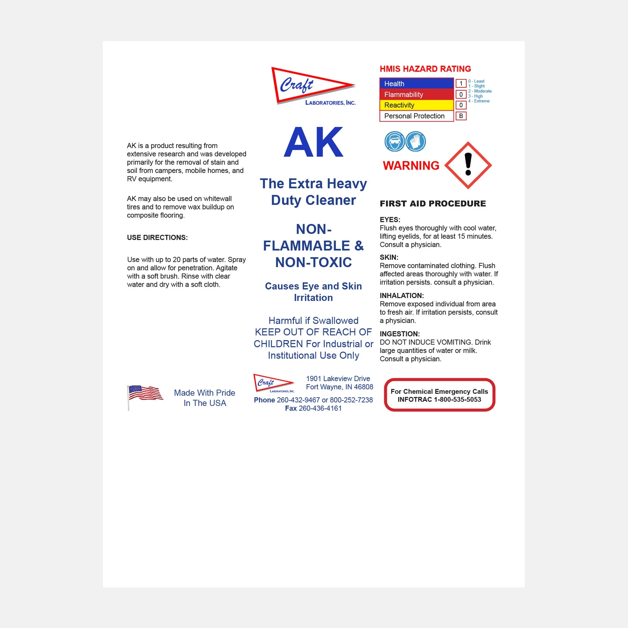 Originally developed to strip protective wax from auto parts after overseas shipment, AK H.D. Cleaner has become a versatile solution for tough soils across many surfaces. It effectively removes stains, soil, tar, sap, and wax buildup from whitewall tires, composite flooring, campers, and mobile homes. Safe, biodegradable, and easy to rinse, it delivers heavy-duty results where other cleaners fail.
