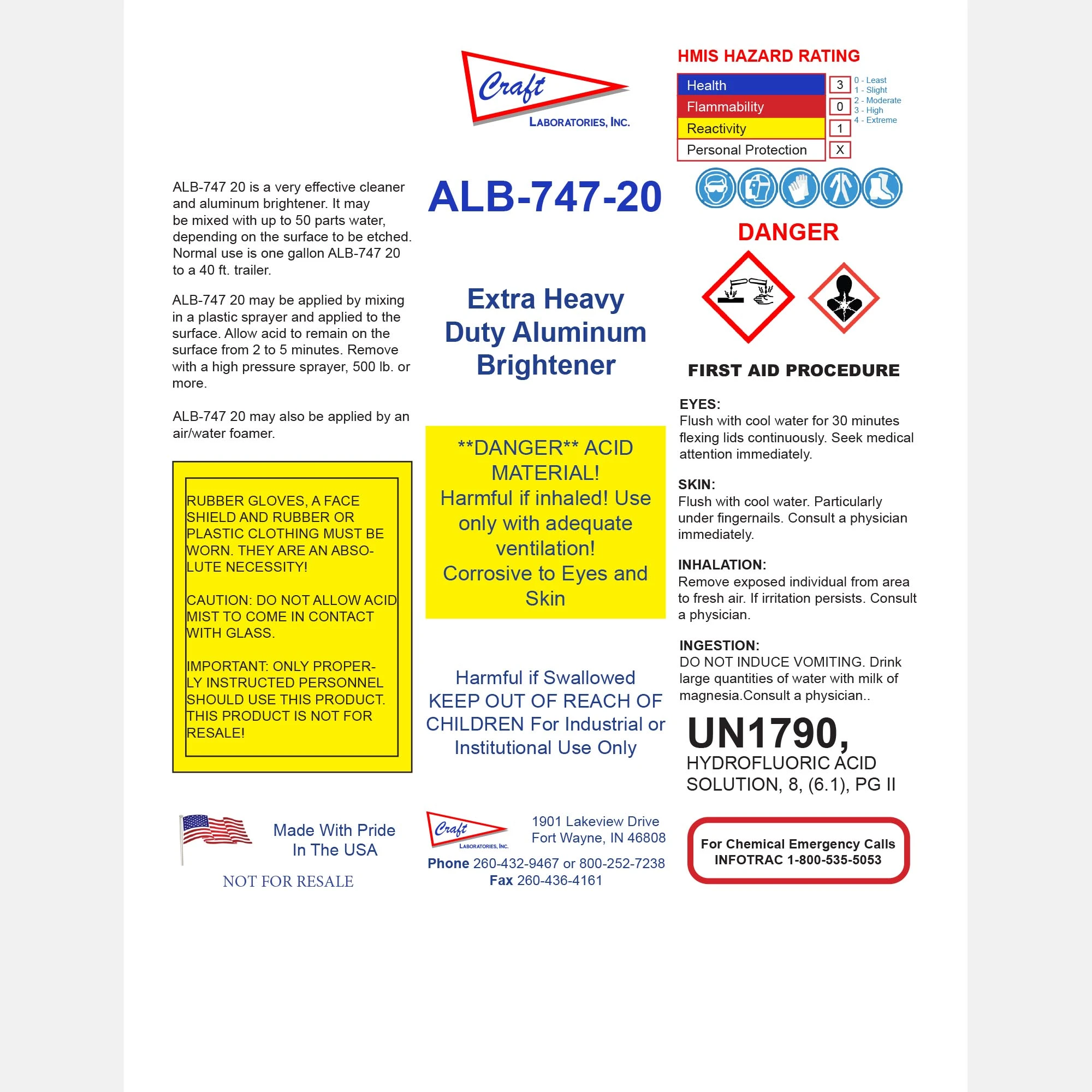 These products contain acids that are corrosive to eyes and skin. ALB-747-20 includes hydrofluoric acid, which requires strict PPE and ventilation. Always wear appropriate protective gear and avoid contact with glass, aluminum alloys, or unprotected skin. In case of contact, flush with cool water for at least 15 minutes and seek immediate medical attention.