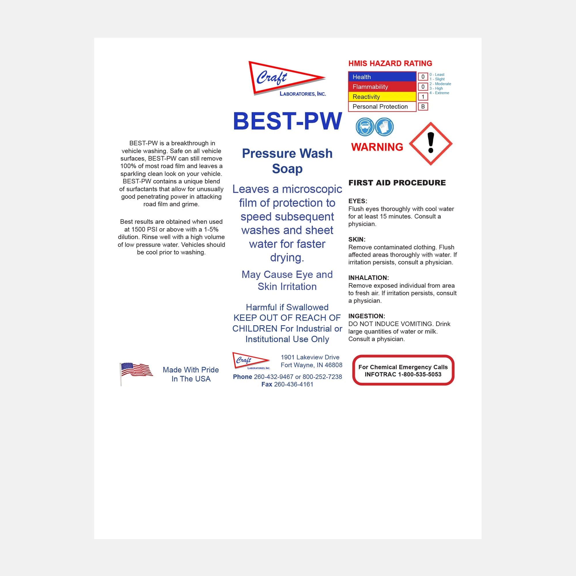 Best-PW is a high-performance pressure wash soap built with a unique blend of surfactants that attack road film and grime at the source. Safe for use on all hard-painted surfaces, plastics, rubbers, and metals, this phosphate-based cleaner removes 100% of most soils while leaving behind a protective film to speed future washes and reduce water spots. Ideal for detail shops, fleets, and facilities demanding a sparkling clean finish every time.