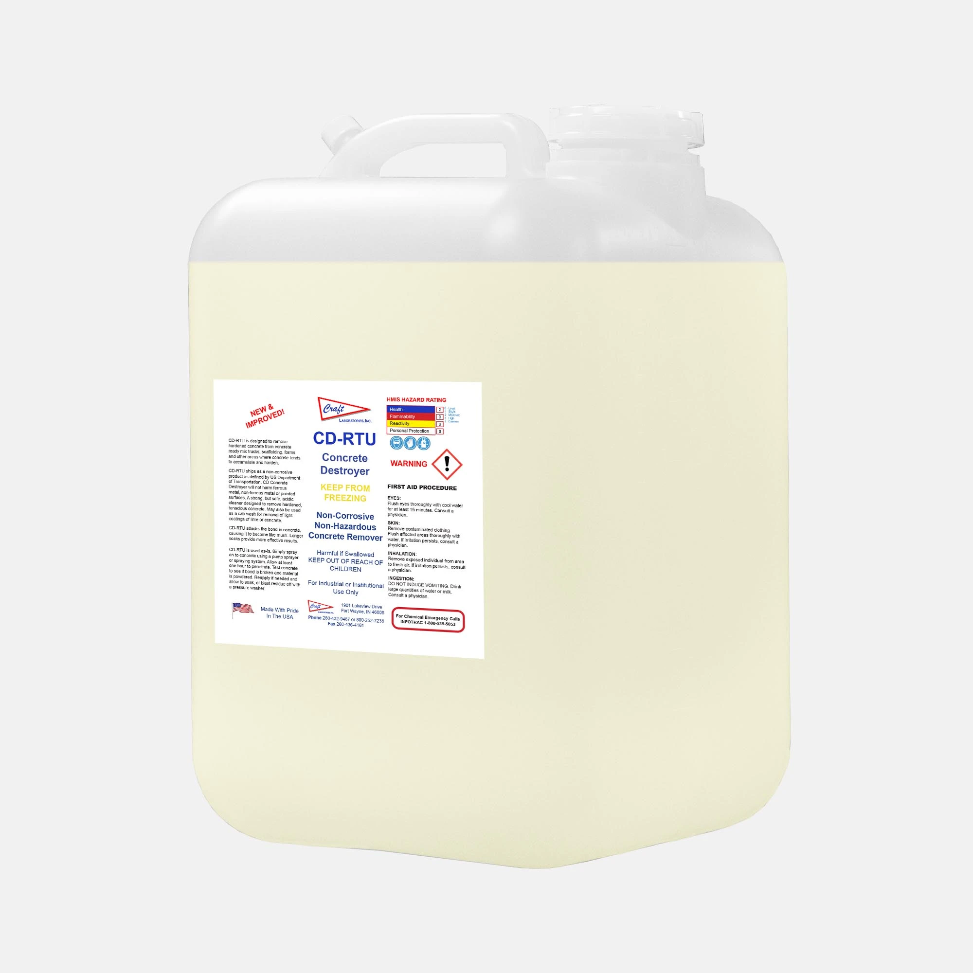 The Concrete Destroyer! CD-RTU is a ready-to-use, non-corrosive cleaner that safely dissolves hardened concrete buildup on trucks, tools, and equipment—without damaging metal or painted surfaces.