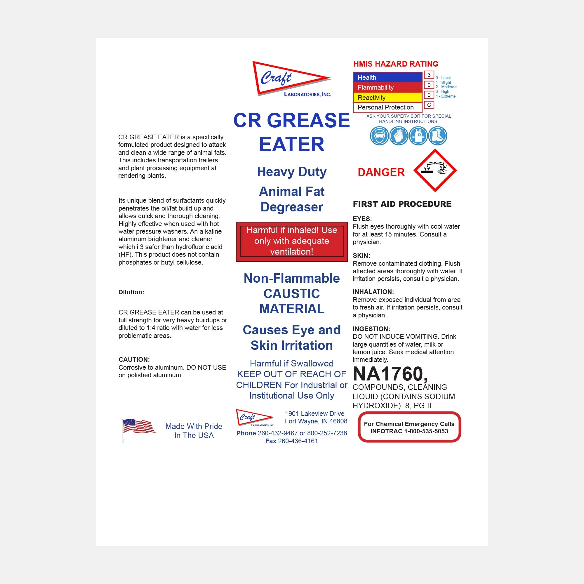 CR Grease Eater is a heavy-duty, non-flammable caustic degreaser developed to penetrate and clean thick layers of animal fats. Highly effective in rendering plants, transportation trailers, and food processing equipment. Its surfactant blend penetrates buildup for quick, thorough cleaning.