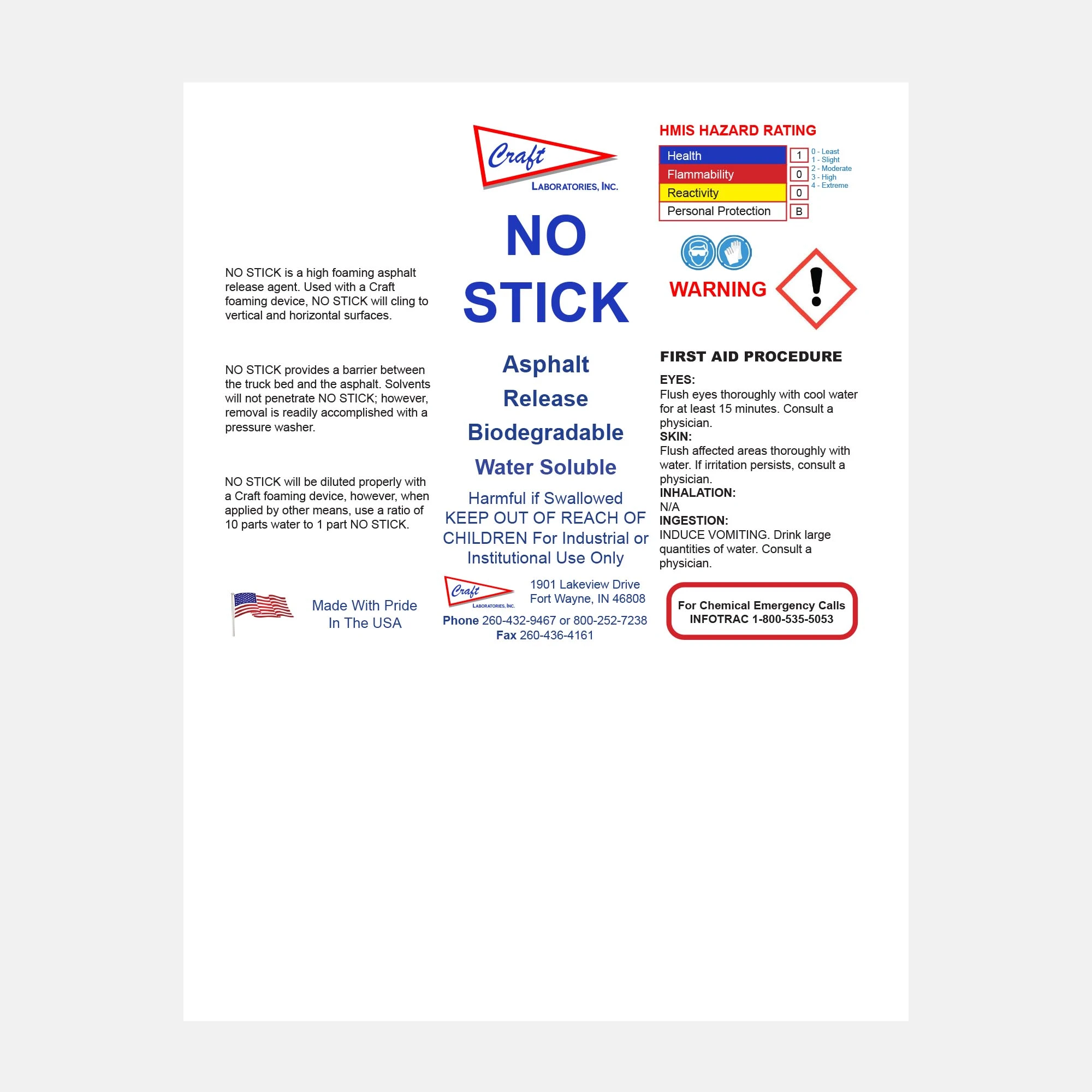 No Stick is a powerful, biodegradable asphalt release agent that creates a protective film between the truck bed and asphalt, preventing adhesion without the use of harmful solvents. The formula clings effectively to both vertical and horizontal surfaces when applied using a Craft foaming device, ensuring complete coverage and reliable performance.