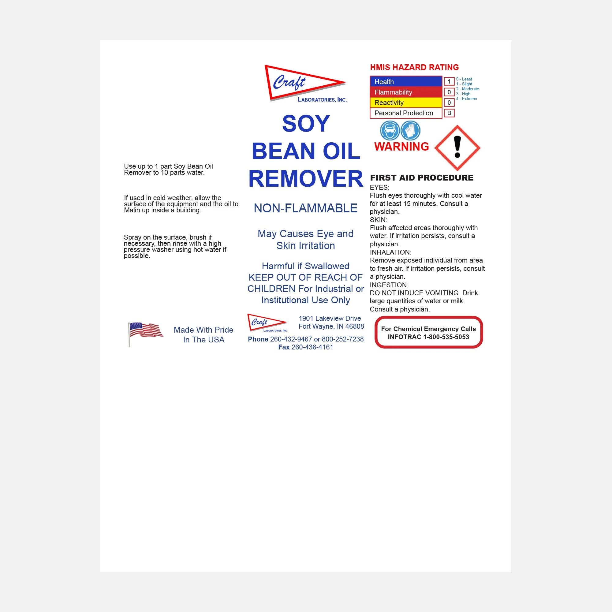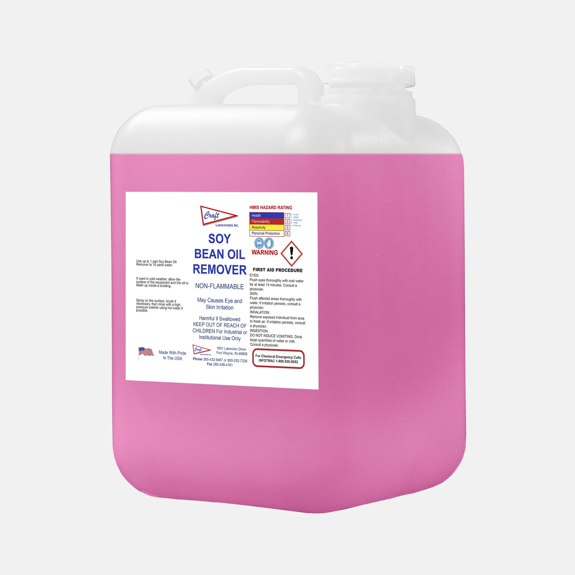 Soy Bean Oil Remover is a non-flammable, biodegradable cleaner formulated to dissolve and remove soybean oil residues from equipment and surfaces. Designed for use in industrial environments, it penetrates and lifts buildup for easy rinse-off cleaning.